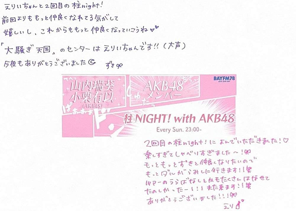 毎週日曜23時からお送りしている【柱NIGHT! with AKB48】