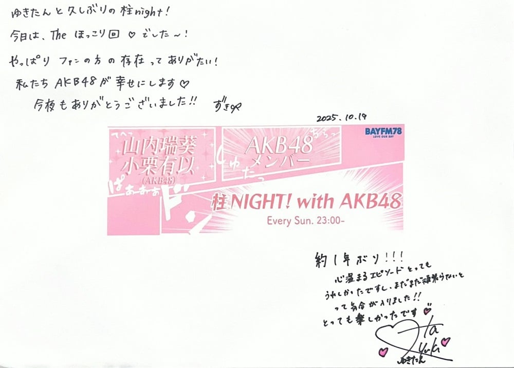 ご希望の方は、『柱NIGHT WITH AKB48』の番組公式Xをフォローしていただき、
