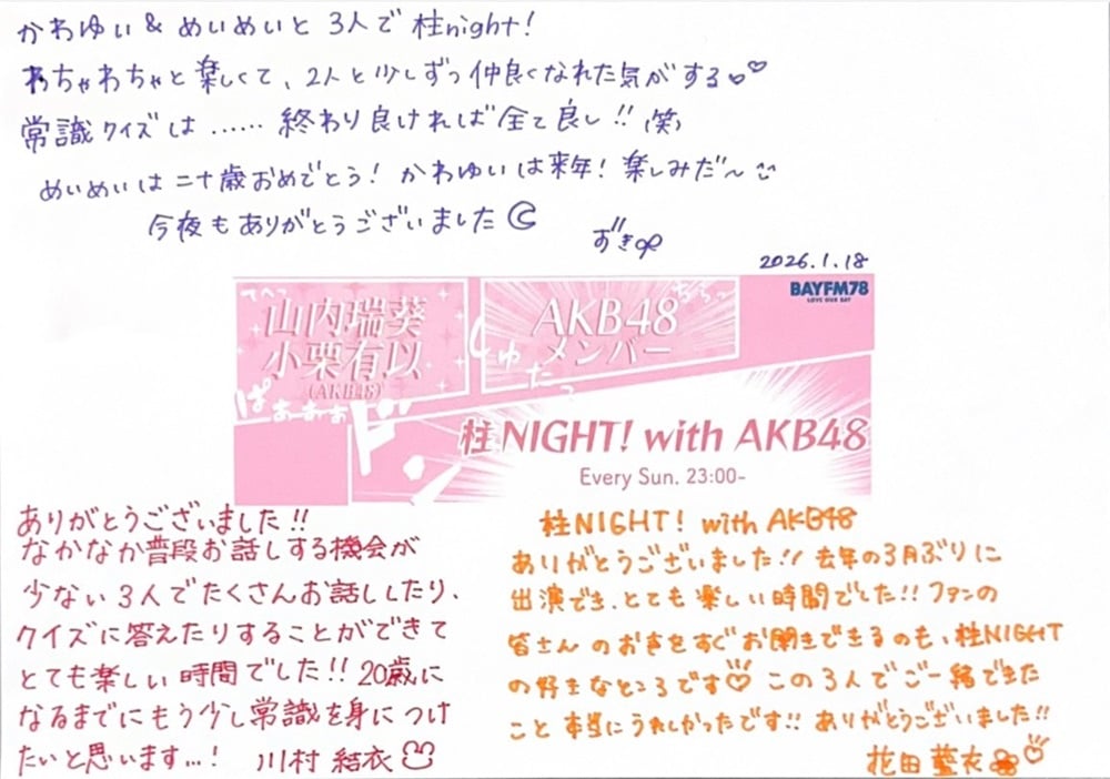 1月18日にお送りしました『柱NIGHT! with AKB48 』。