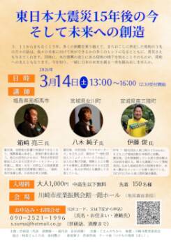 3月14日(土)川崎市産業振興会館1階ホールにて開催『東日本大震災15年後の今 そして未来への創造』を主宰する世話人代表・須摩修一さん登場