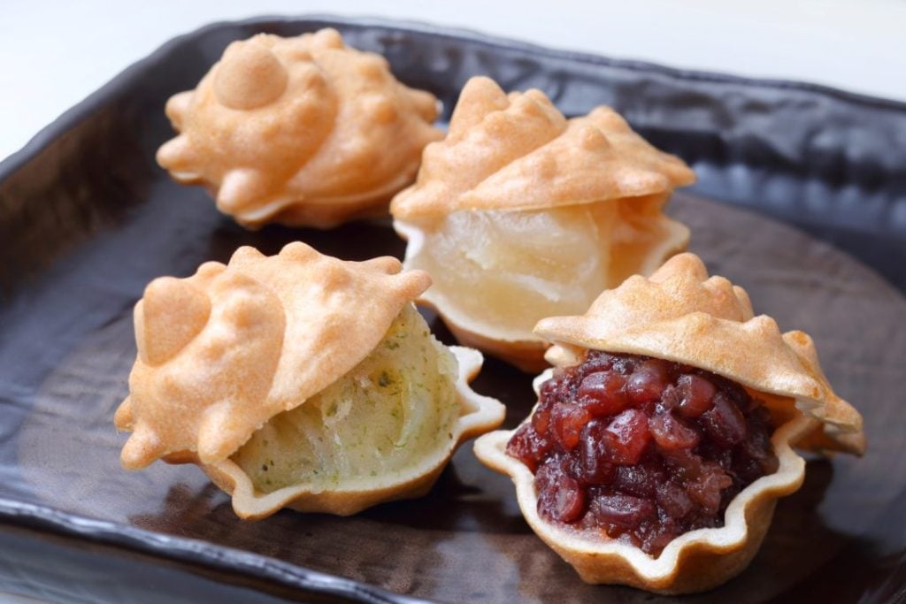 - 自慢の“ご当地最中“は「さざえ最中」。餡は「小倉・こしあん・白あん・ゆずあん・青のり」と有り、年間15万個を売るヒット商品です。
