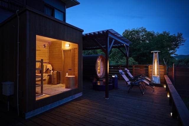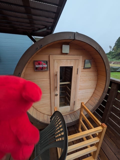 アウトドアだとテントサウナというのも最近は有りますが、サウナ小屋があって、里山の景色を眺めながら仲間と水着で楽しむのも、こじんまりと貸切で楽しめるのもどっちもいいですよね