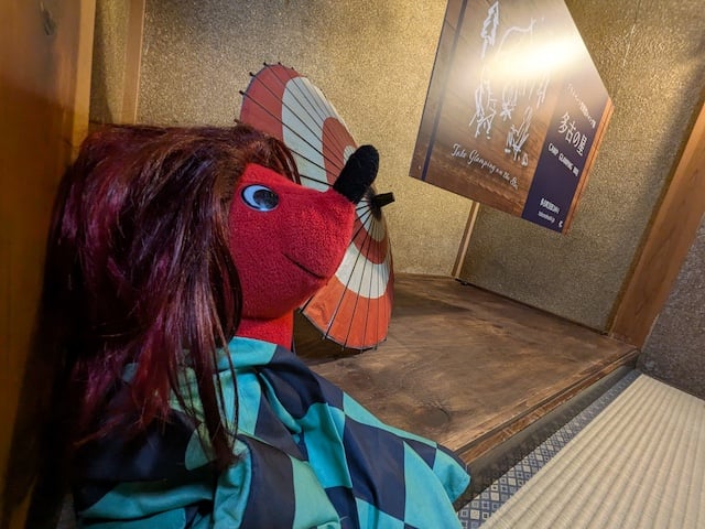 新井さん:その他にも「多古米ワッフル」という米粉を使ったデザートがあるんですけれども、ふわっとした軽い食感なのに、しっかりとした食べごたえがあります。ワッフルの見た目は丸いんですけれども、満月の上を流れ星が流れているイメージで作っています。ワッフルは、月をイメージしていて、その上にかかっている粉砂糖が銀河、流れ星は星型のお煎餅。芋けんぴは流れ星の尻尾の部分を表現しています。シェアをして食べる人もいれば、一回来て食べれなかったものは次回来て別のものを食べるっていう方もいらっしゃいます。あと、店の中に、人気アニメの貸衣装もあるので、コスプレしながらご飯を食べたりもできます。結構多くの方が写真を撮られて楽しまれてます。のどかな田園風景を抜けた田舎のおばあちゃんちでご飯を食べている感じの空間でゆっくりくつろいで、美味しい多古米でお腹いっぱいになってもらいたいです。