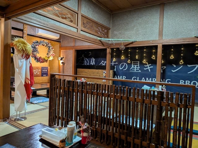 新井さん:2022年に多古の星キャンプ場がオープンしまして、敷地の中に古民家があって、キャンプ場に来た方が昼間でも夜でもくつろげる場所として活用しようと出来た場所です。オープンしたのは去年の4月で、使われていなかった古民家を綺麗にして使える状態にしました。畳も新しくして、その上にテーブルを置き、30人弱のお客様がくつろげる場所になりました。カフェをオープンするにあたり、スタッフと話し、地元のものを取り入れたいとなりました。多古といえば、多古米なので、多古米を使ったメニューを作ろうとなりました。お米の味を最大限引き出せるのがおにぎりじゃないかとなり、おにぎりが最初のメニューとなりました。「大きいので行こう」とはなってたんですけど、最初500とか。(笑)あったんですけど、ちょうどいい感じで、やっぱ世間一般で見るサイズが150なのでそれよりも大きいサイズがいいので、300gのレギュラーサイズになりました。ちなみに私の好きな具は牛時雨です。さっぱりしていて、山椒が少し効いているのでおすすめです。