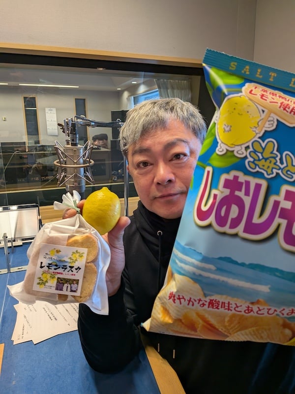 スタジオにあるレモン、収穫されたばかりですが、輸出入だと必要になる虫などへの対策用のワックスや農薬を減らせるという事と、収穫したらすぐに消費者、つまり私たちの手元に届けられるので、フレッシュさが全然違うのだそうです。