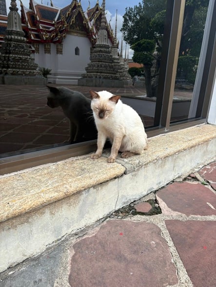 - こちらは、バンコクで出会った寺院猫。猫の和みパワーは万国共通ですね。