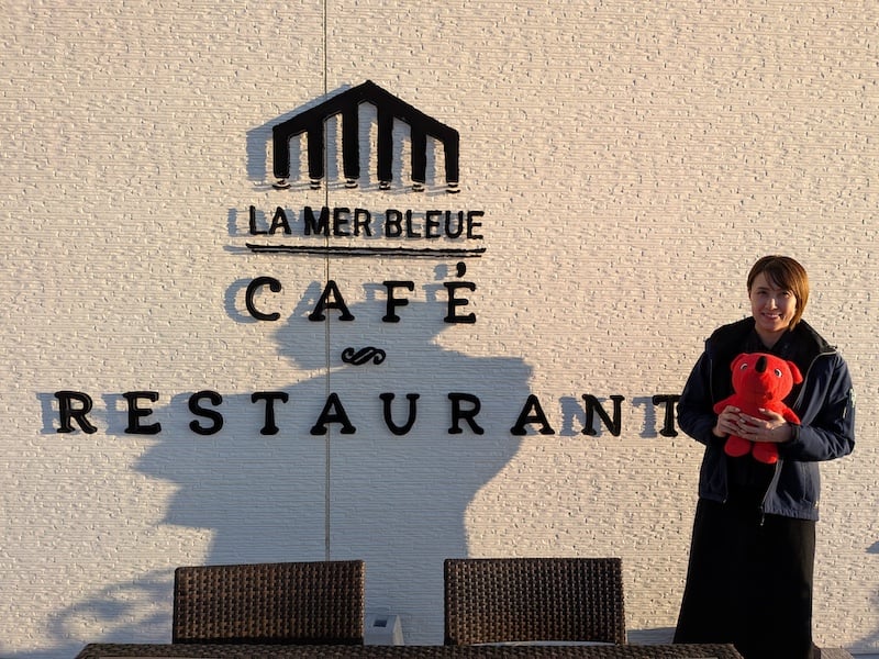 前田さん:金谷にありますBAYSIDE KANAYAというグランピングの併設しているレストランのLA MER BLEUEになります。LA MER BLEUEは青い海という意味でございまして、宿泊している方も宿泊していない方もお立ち寄りいただけるレストランになっておりまして、もう本当に日本で一番海に近いのではないかと。もう本当に海辺にあるレストランになっております。海に近いって言っても本当にもう海の上に立ってるって言っても過言ではないぐらい、もう海とホテルの間に遮るものがないんですね。道路ですとか。もう本当柵だけしかなくて満潮のときはもう打ち寄せる波がお部屋のテラスにぶつかってくるぐらい近いですし、潮が引いているときは近くの砂浜を歩くことはできるんですけれども、もうそこから本当に岩肌がゴツゴツ見えるぐらい。結構、潮の満ち引きで見え方もすごい変わります。