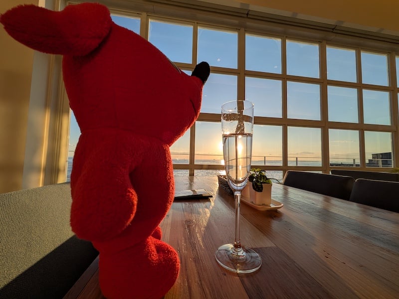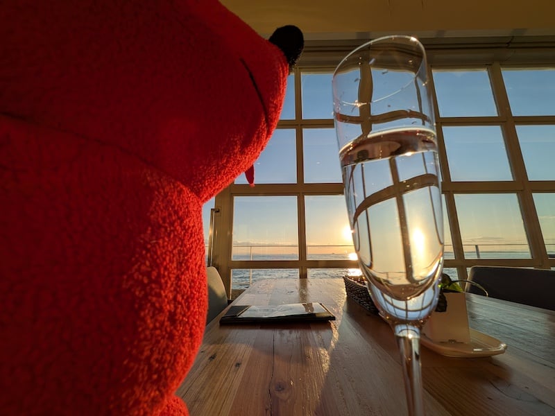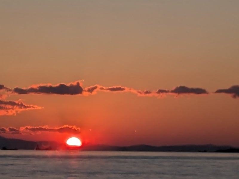 お話にもありましたが、従業員さんも動きが止まるほど美しい夕日。その燃えるような太陽が沈んでから「はっ」っと我に帰って皆さん、食事やお茶の続きが始まるそうです。