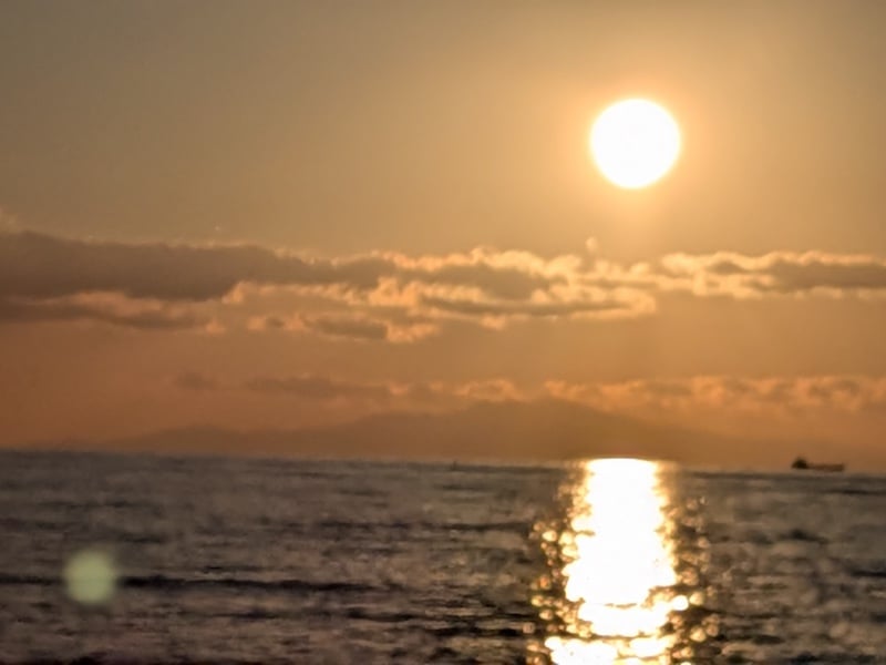 これは、ロマンチックすぎますね。確かに、金谷港からは東京湾の対岸の横須賀や久里浜、富士山、伊豆半島がなんとなく見えているけど、シルエットになるとくっきりみえる。不思議ですね。