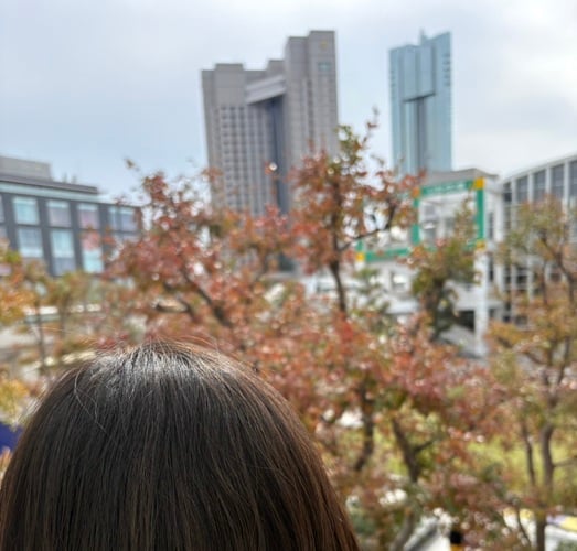 - 後頭部越しの紅葉。