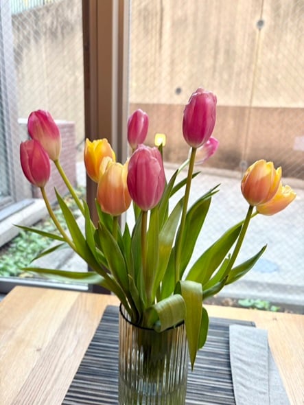- 我が家には、一足早く春を感じさせてくれる早咲きのチューリップが登場。