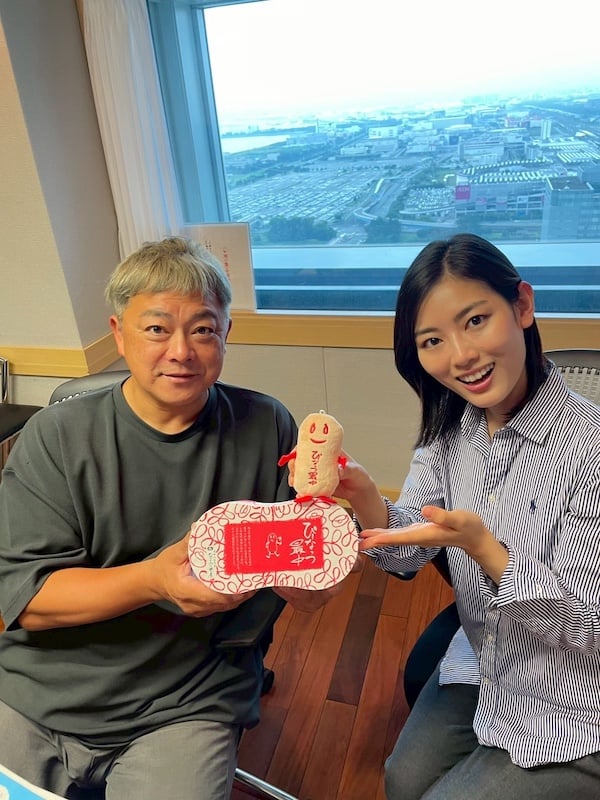 小山内さん:第三の矢として「なごみるく」というおまんじゅうがございます。こちらもおすすめです。ミルク風味のおまんじゅうで、幅広い世代の方に好まれるお味となっております。実は、なごみの米屋には、ただいま強力な宣伝部長、新浜レオンさんがいらっしゃいまして、総本店の方にも、等身大パネルが置いてあったりですとか、たくさんの新浜レオンさんのファンの方もいらっしゃっていただいてます。