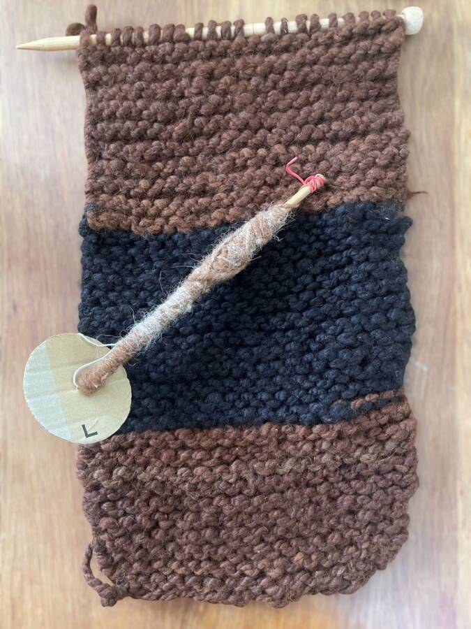 こちらはまだ未完成ですがアルパカの毛糸でポーチを作成中とのこと。