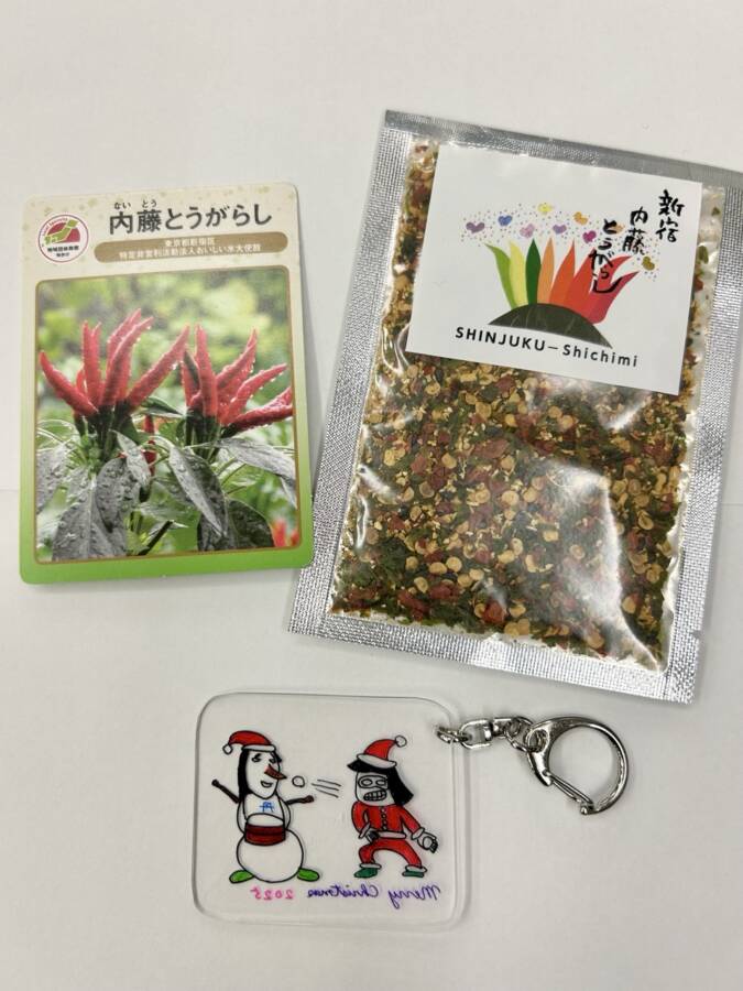▽ Fくんからは、内藤とうがらしと一緒に毎年恒例のプレゼントも!(伊藤さんと丹下さん)