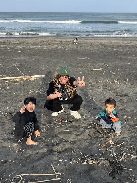 今回は、一宮海岸を散歩! キッズサーファーの酒井達海 君 サーファー友だちのふくちゃん サーファー友だちのこずえちゃん と、よしさん 海上がりで飲む、……